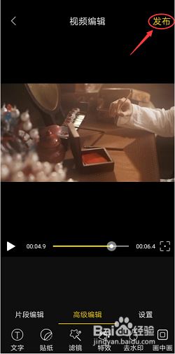 5、视频编辑完成后,点击视频编辑页面右上角的“发布”导出GIF动图。