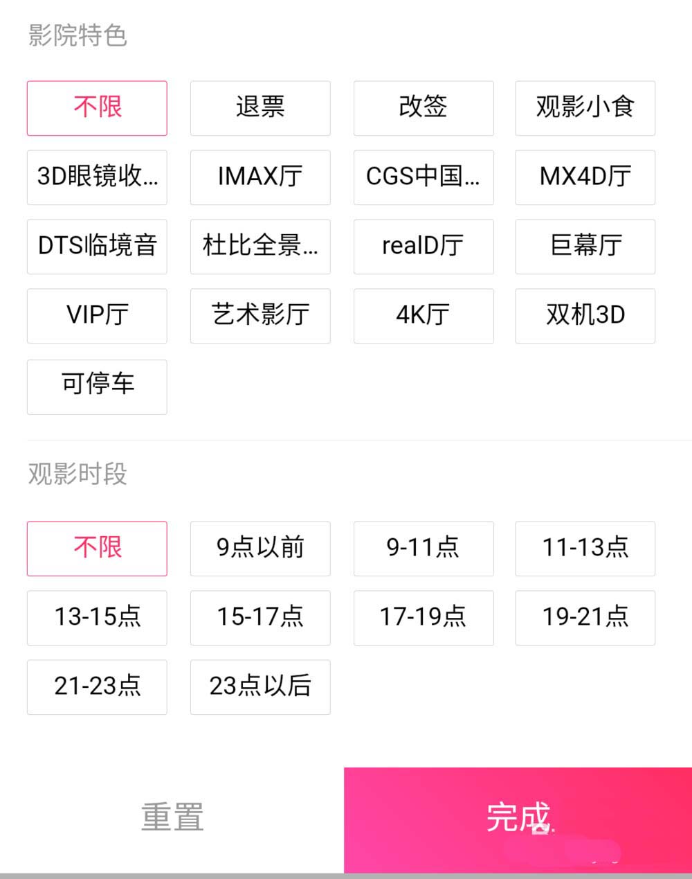 5、点击上方的筛选选项,输入【影院筛选】条件,然后点击【确定】选择符合要求的影院。