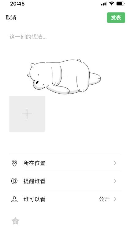 4、然后发表,在朋友圈躺着的熊就显示出来啦!