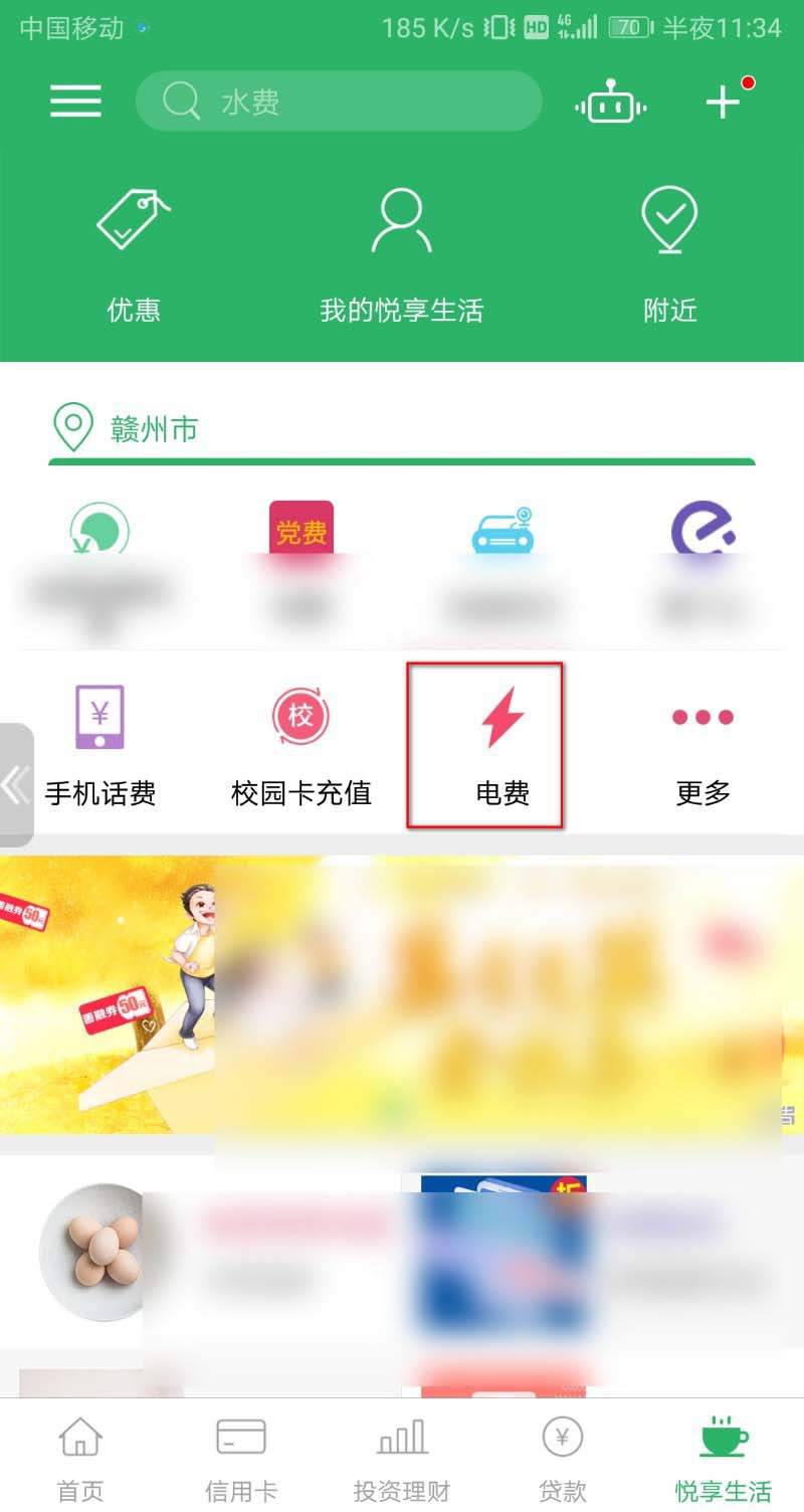 3、进入悦享生活主页以后点击电费。