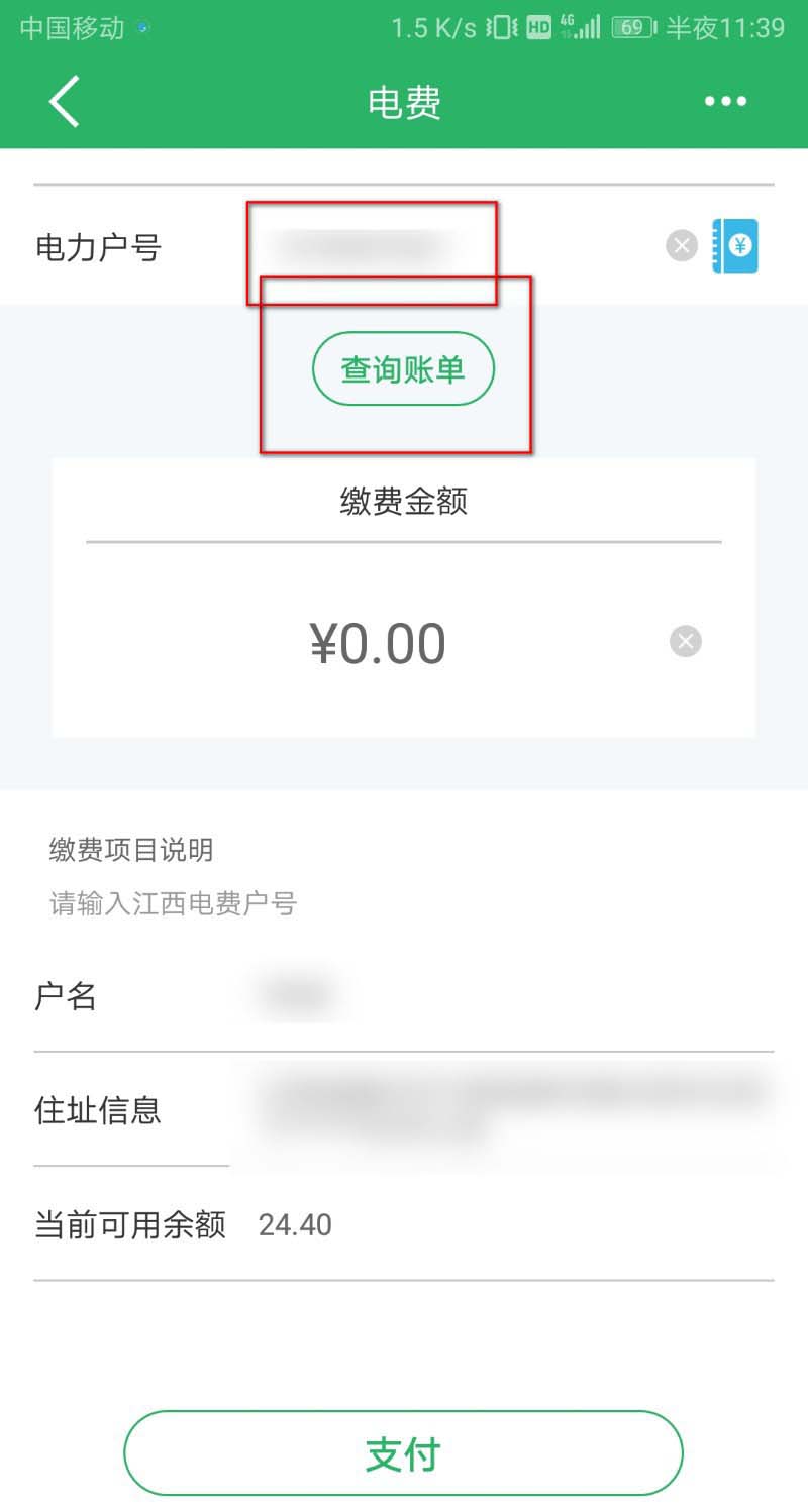 5、说了以后点击查询即可查询到自己家里还剩多少电费,输入金额点击下面的支付。