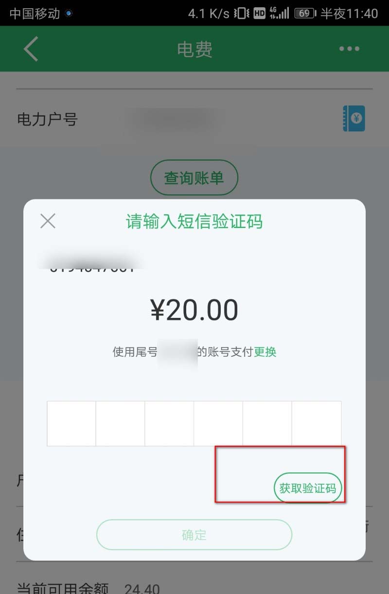 6、然后还要输入短信验证码进行充值电费。