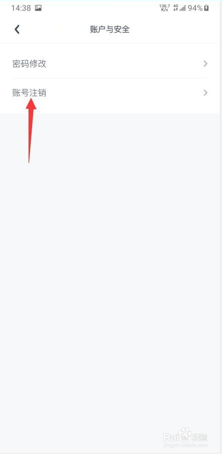 4、在账户与安全界面,可看到密码修改以及账号注销,点击进入【账号注销】。