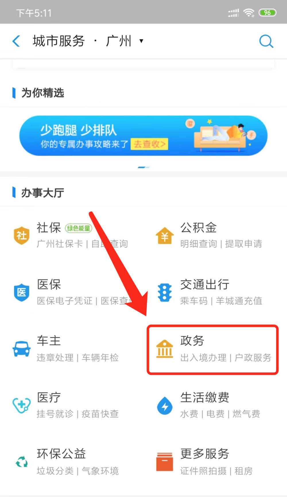 4、点击【政务】功能。