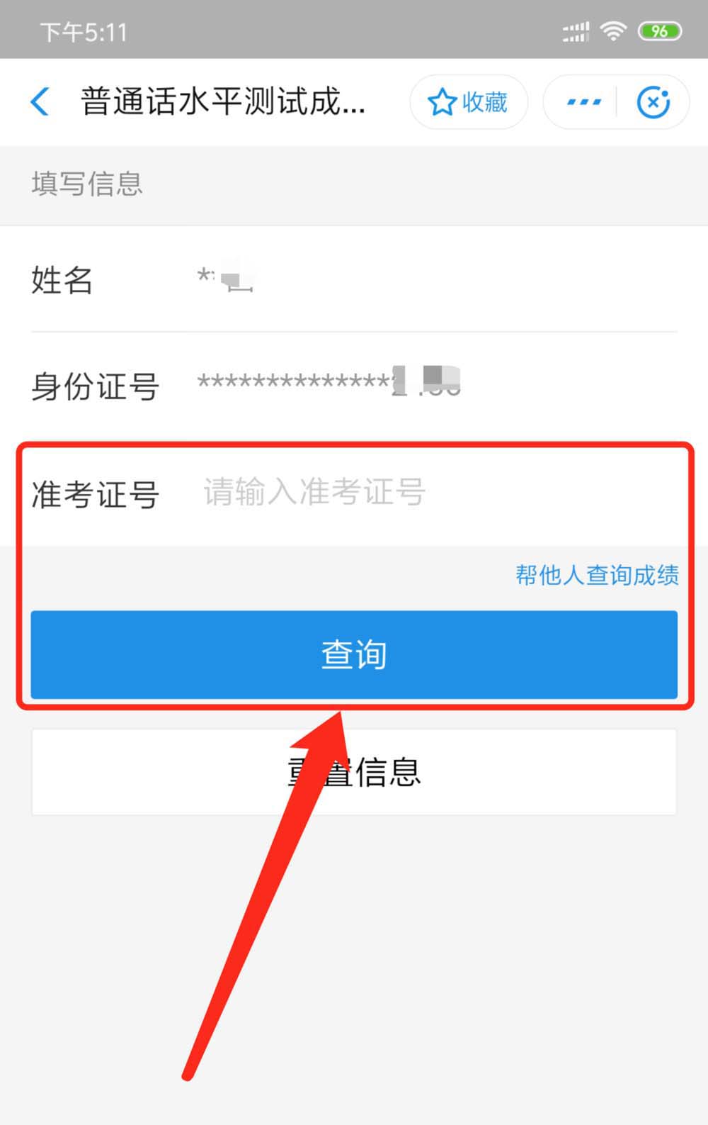8、输入【准考证】并点击【查询】即可查询普通话水平测试成绩。