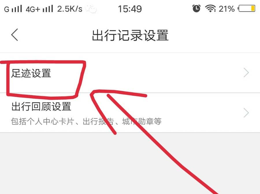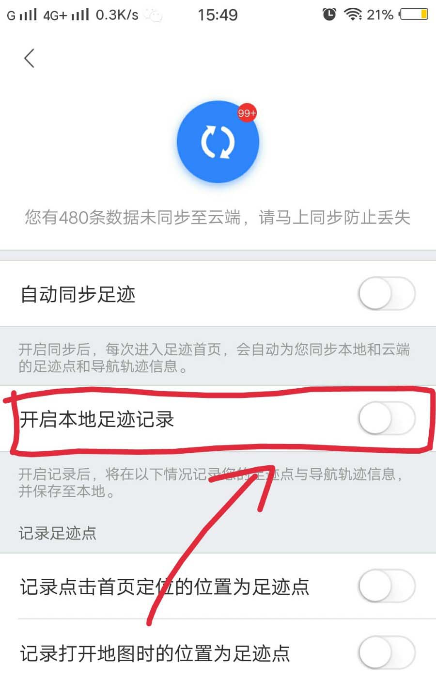 6、点击第一个足迹设置,把里面的本地足迹记录关闭即可。