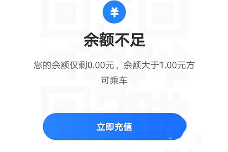 2、点击“乘公交”之后,就会弹出自动刷新的乘车码了,当然如果余额不足的话是无法使用的,比如下图就是充值页面遮挡了扫描码;