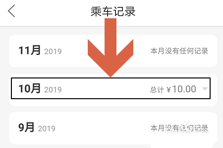 5、记录页面中会按照月份进行排列,月份右侧显示本月消费总金额,见下图一...点击还可查看每条公交线路的详细乘坐时间、消费金额以及车辆编号等信息;