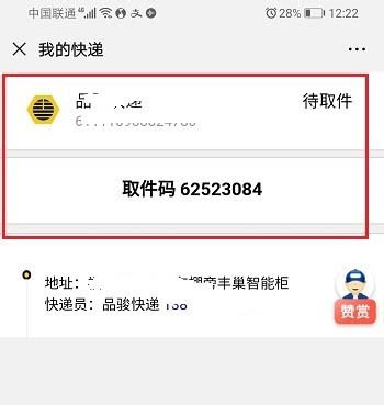 4、进去我的取件界面,可以看到快递取件码,如下图所示: