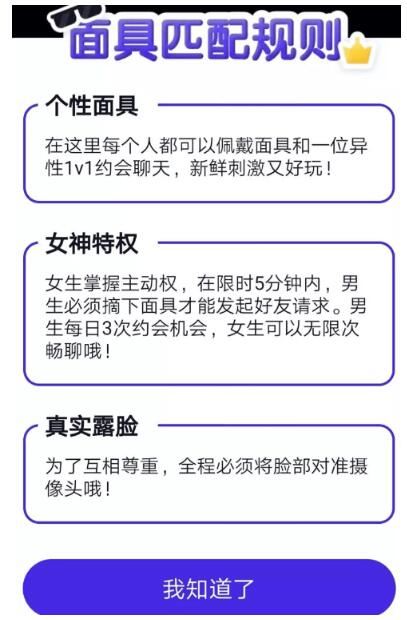 4、等待一会即可成功匹配,在视频中女生是可以带着面具的,而男生则需要拿下面具才可以