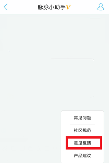 4、在脉助手页里,右端就是自行帮助的入口,然后在浮出的白框中再触一遍反馈。