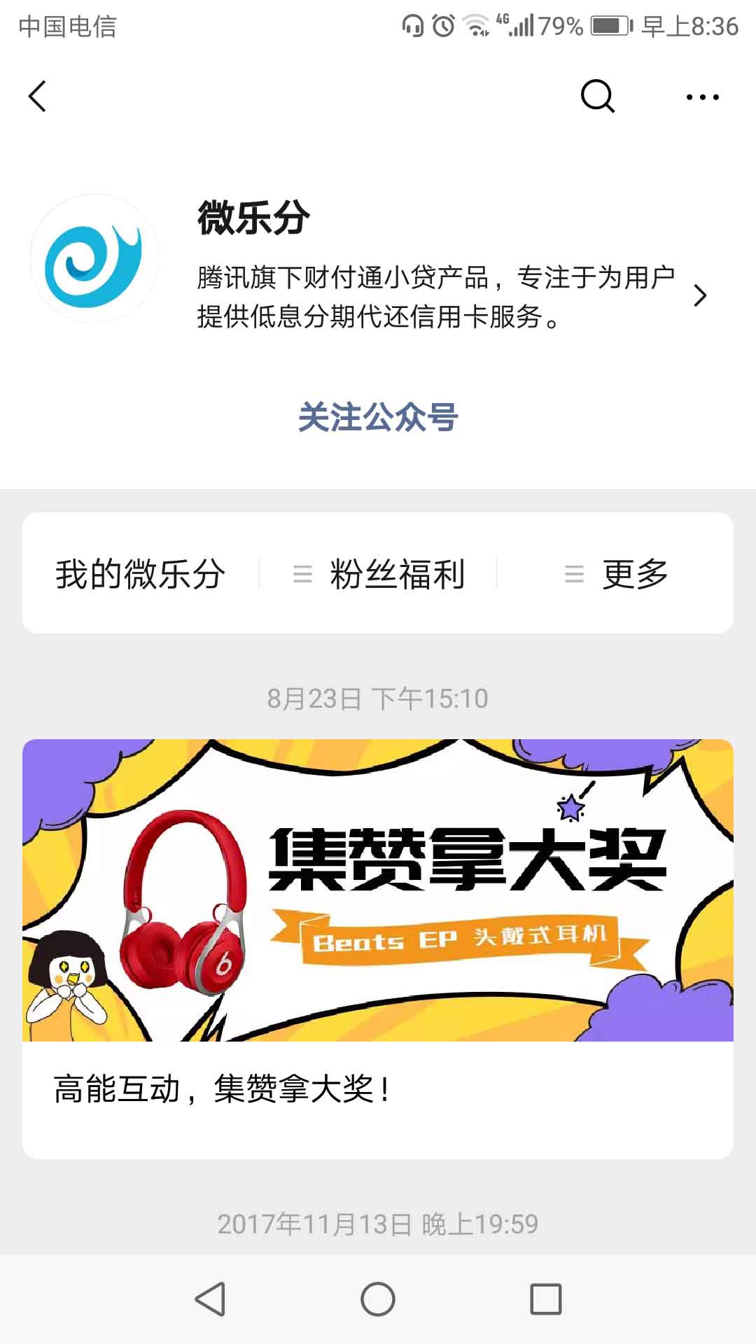 2.然后关注微乐分公众号
