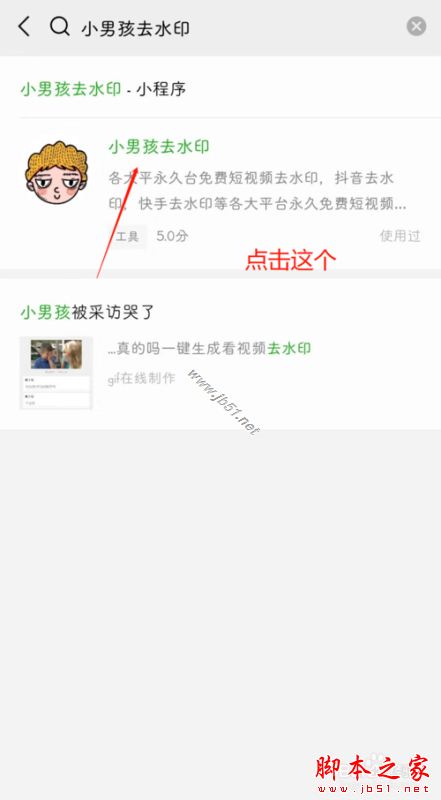 4.搜索“小男孩去水印”点开小程序