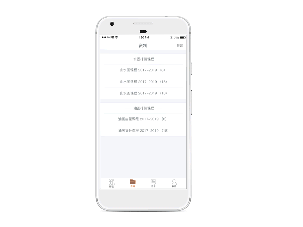 创建资料库:首先,打开主界面“资料”,点击“新建”,填写资料库基本信息、关联课程后确认即建立资料库,以便区分不同课程的讲义。