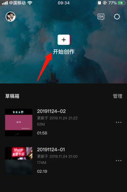 打开剪映App,在剪辑首页上方点击开始创作;