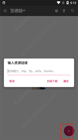 1、打开后点击右下角的按钮即可输入资源链接,支持磁力、http、ftp、ed2k、thunder等链接;