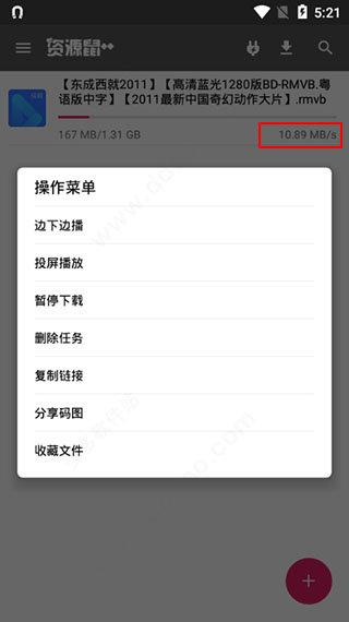 3、同时下载速度也是极快的,毫不限速,还支持边下边播、投屏播放、分享码图等功能;