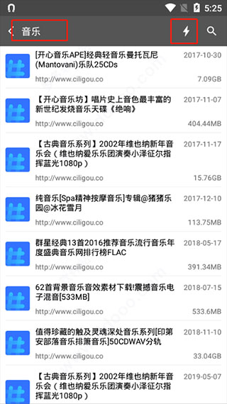 5、如果要自行搜索资源,那么可以在上方输入关键字,点击闪电标志呢可自由切换磁力源;