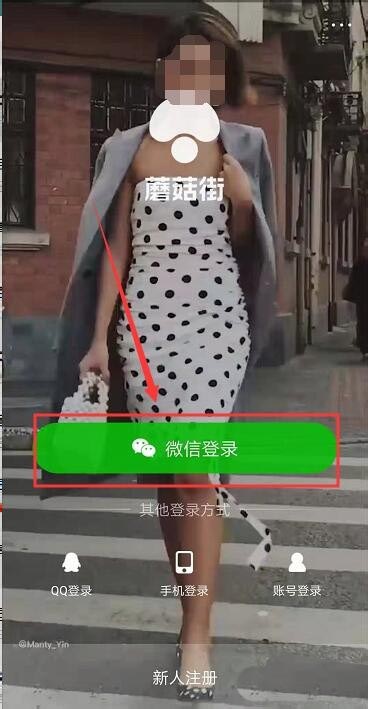 ①打开【蘑菇街】软件,点击【微信登录】。