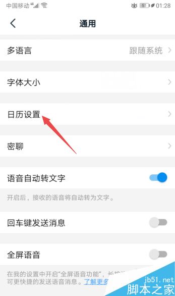 之后点击日历设置。