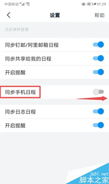 然后将同步手机日程的滑动按钮向右滑动。