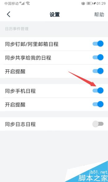 滑动完成后如图所示,这样便开启了同步手机日程。