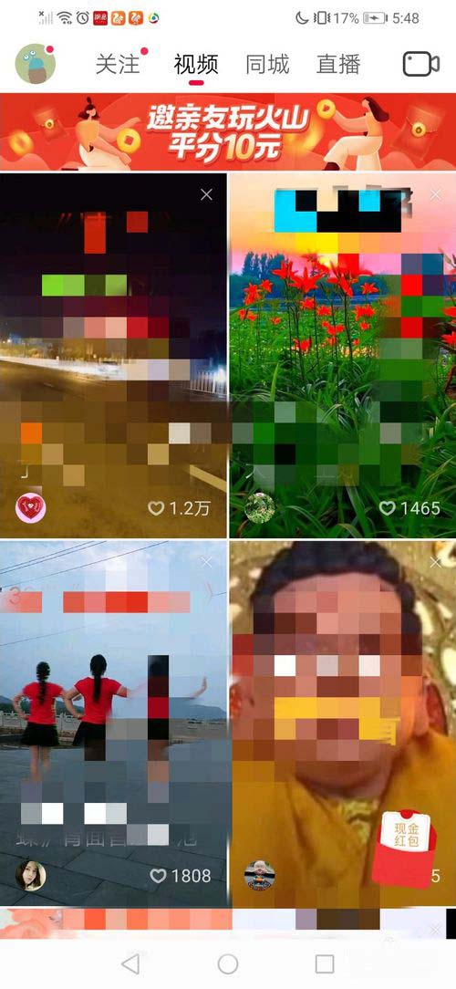 我们打开两者的主界面,基本是长的一模一样,刷视频的方式也没啥区别,主要区别在上面的功能上。极速版少了很多功能,但是多了一个红包。