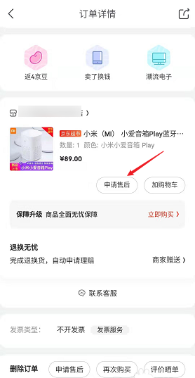4、进入订单详情界面之后,点击【申请售后】