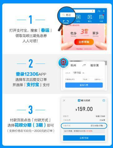 花呗推出“春运全民火车票分期免息计划”