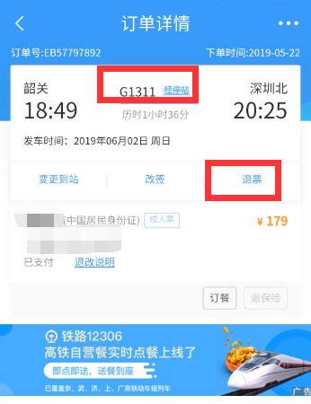 然后选择刚刚后面的候补票车次,选中下方有个 退票按钮