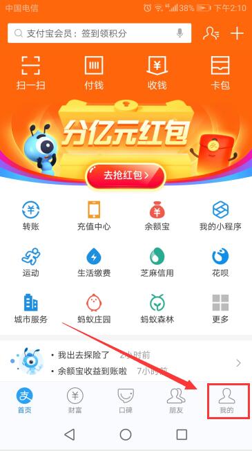 1、进行支付宝,点击右下角"我的"