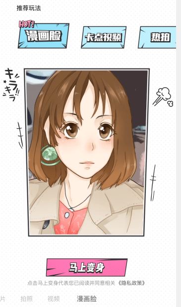 3、不仅可以用自己照片,还可以把自己爱豆的脸变成漫画脸。