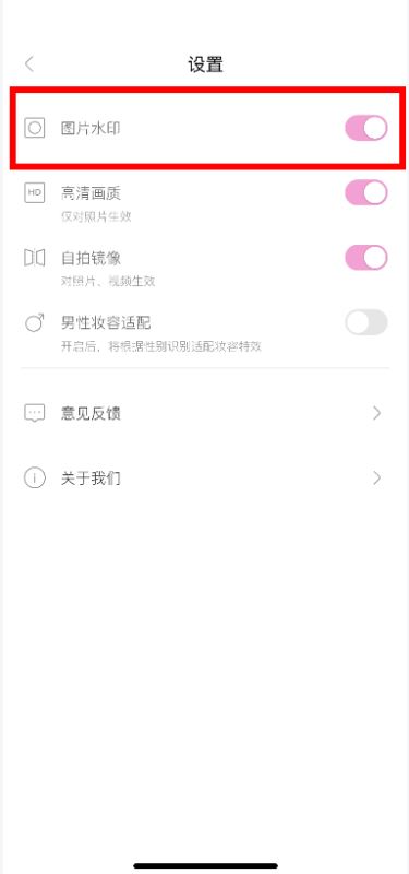 2、来到设置页面,我们会看到“图片水印”功能,直接滑动关闭,就可以去掉水印了。