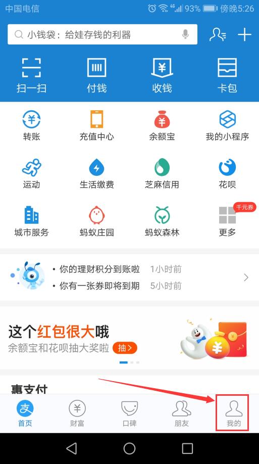 1、进入支付宝,点击右下角我的