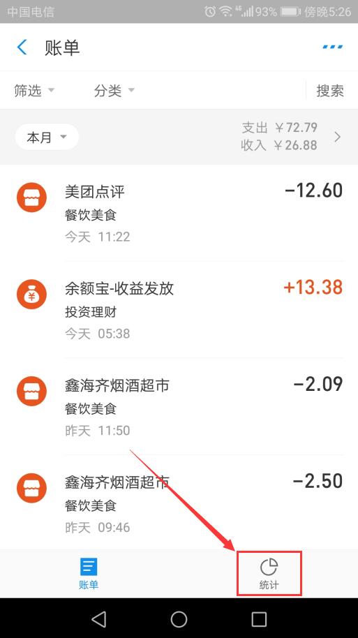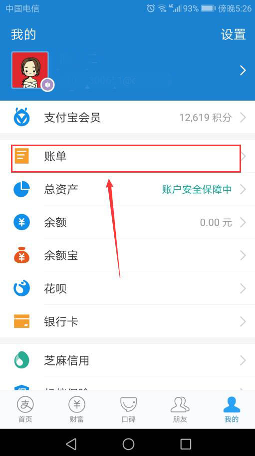 2、点击账单