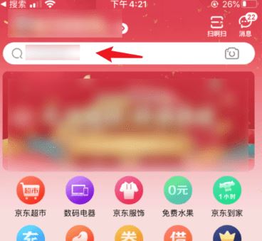 1.首先我们打开京东,进入页面之后点击上面的搜索栏。