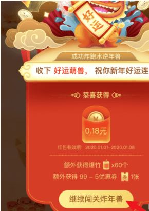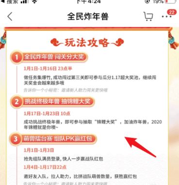 8.通过炸年兽,挑战终结年兽,即可参加抽奖。在1月4日也可以组队赢取战队红包。
