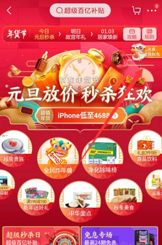 进入年货节,我们点击最下面的主会场按钮,进入到主会场界面里面。