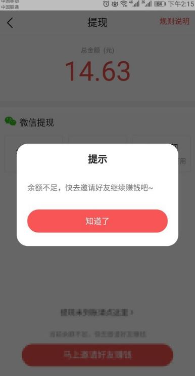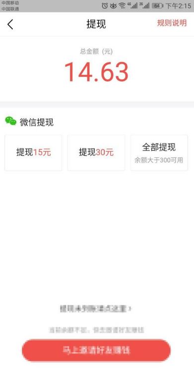5、如果不足15元是不能进行提现的。