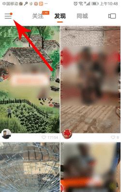 1.首先打开手机上面的快手,进入页面之后,点击左上角的三条杠。