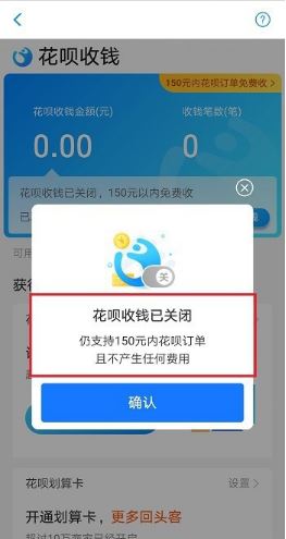 4.花呗收钱关闭之后,依然支持150元以下订单花呗收钱,而且免服务费,如果支付金额大于150元订单,可以让对方分多笔用花呗支付。