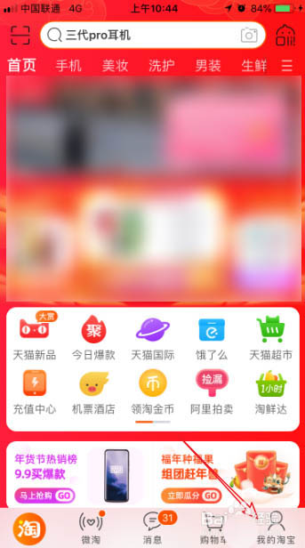 1、首先,我们打开手机淘宝App,然后点击页面右下角的我的淘宝,如图所示