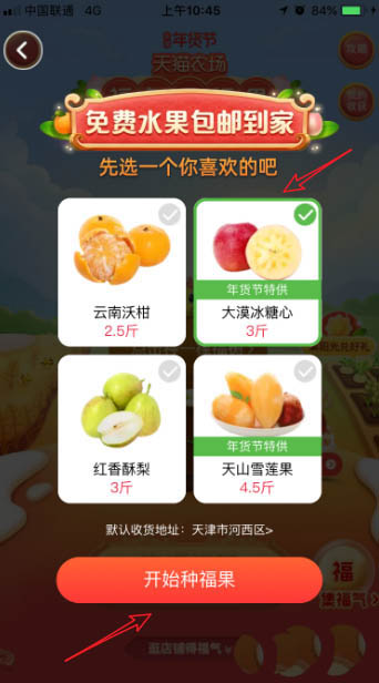 4、进入种福果页面后,我们选择一种福果,将其种成后,即可包邮送到家了