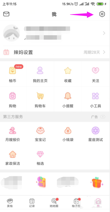 1、要开启地理位置定位功能,美柚的【我】击开,如图。