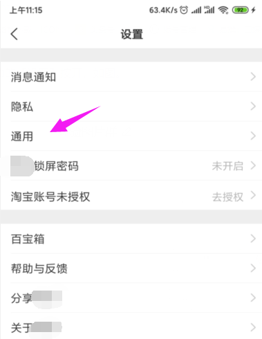 3、继续美柚的【通用】击开,如图。