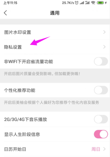 4、【隐私设置】简单触开,如图。