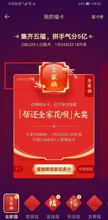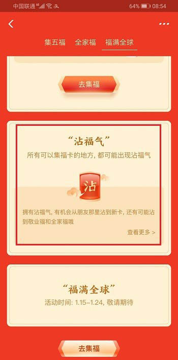 5、也可以用沾福气卡从朋友那里沾来全家福卡