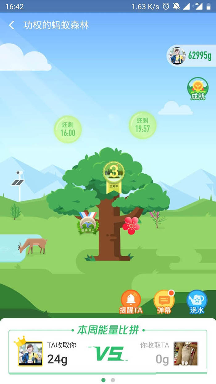 方法二:在蚂蚁森林中浇水获得全家福,每天可以浇水两次,有少量概率出现全家福