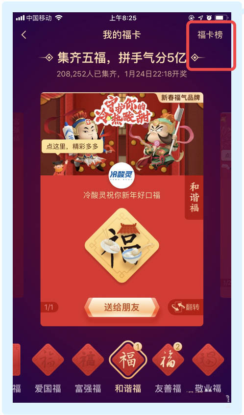 5、在【我的福卡】界面,点击【福卡榜】选项。
