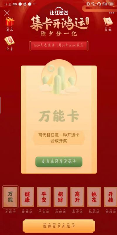 任务1:来活动页面签到,可随机获得1张开运卡;
